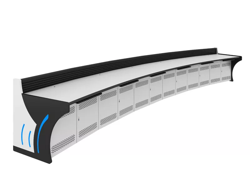 1. Эргономичный изогнутый дизайн для облегчения работы. Изогнутая столешница соответствует визуальному и рабочему потоку, позволяя операторам легко контролировать несколько экранов без частого поворота, что значительно снижает утомляемость шеи, плеч и спины от длительных смен и повышает эффективность мониторинга.